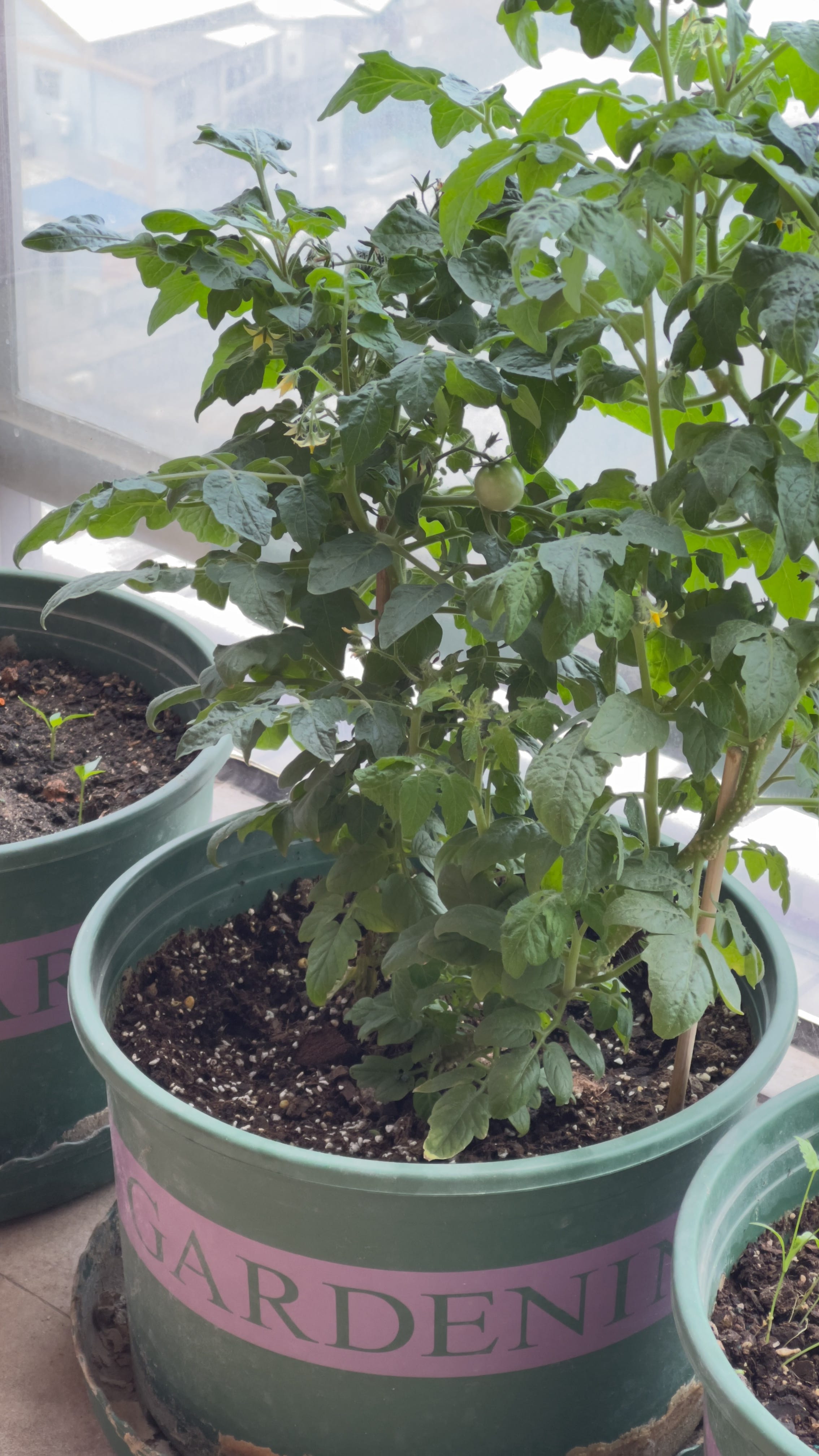 某天换了次工位。搬东西的时候,来帮忙的公司前台阿姨看到我的小绿植,一眼认出了它:「你这是不是西红柿苗啊?长得不错啊!」
